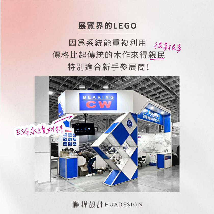 模組化設計是系統組合的一大特色,就像玩積木一樣能迅速計算所需材料,縮短了準備與搭建時間,這對於進場時間緊迫或預算有限的參展商更是有利,不但提升了佈展效率,還無粉塵產生,減少廢棄物又保持攤位整潔。