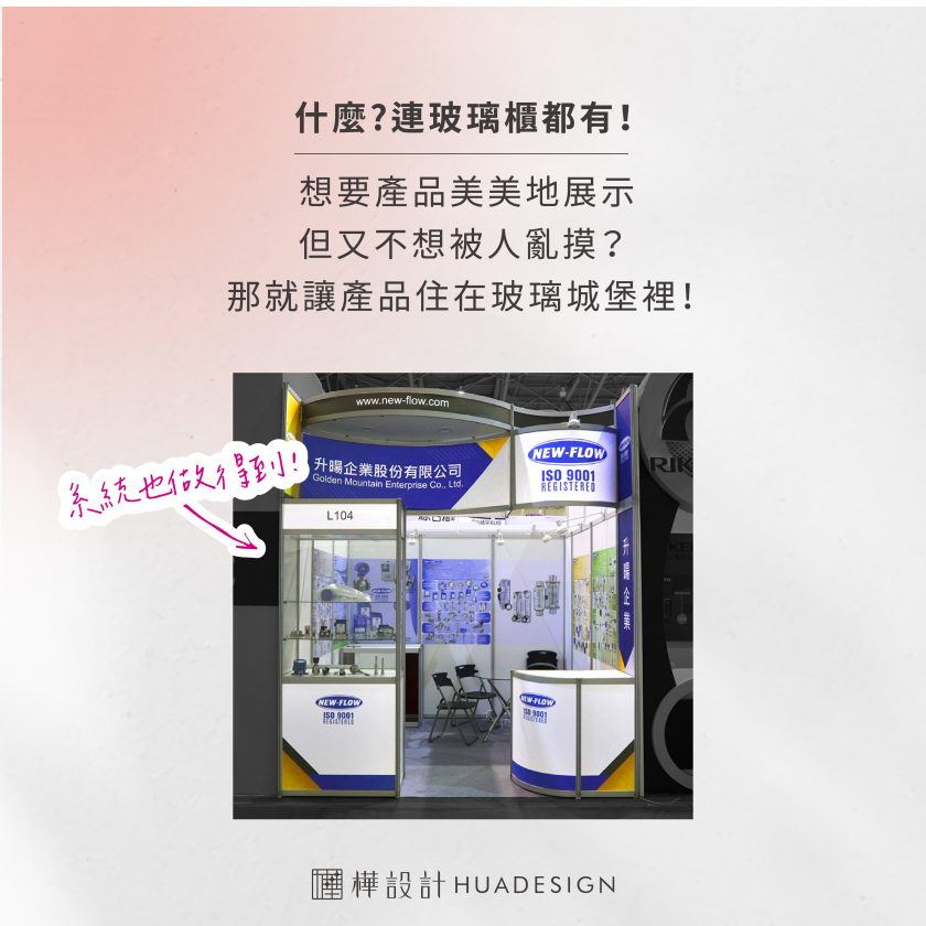 系統結構當然也有常見的玻璃展示櫃,符合現代快速安裝的需求又兼具靈活性,尤其適合短期活動和初次參展的商家。可以增加展品的高級感,玻璃櫃的通透性也讓展示效果更具吸引力。