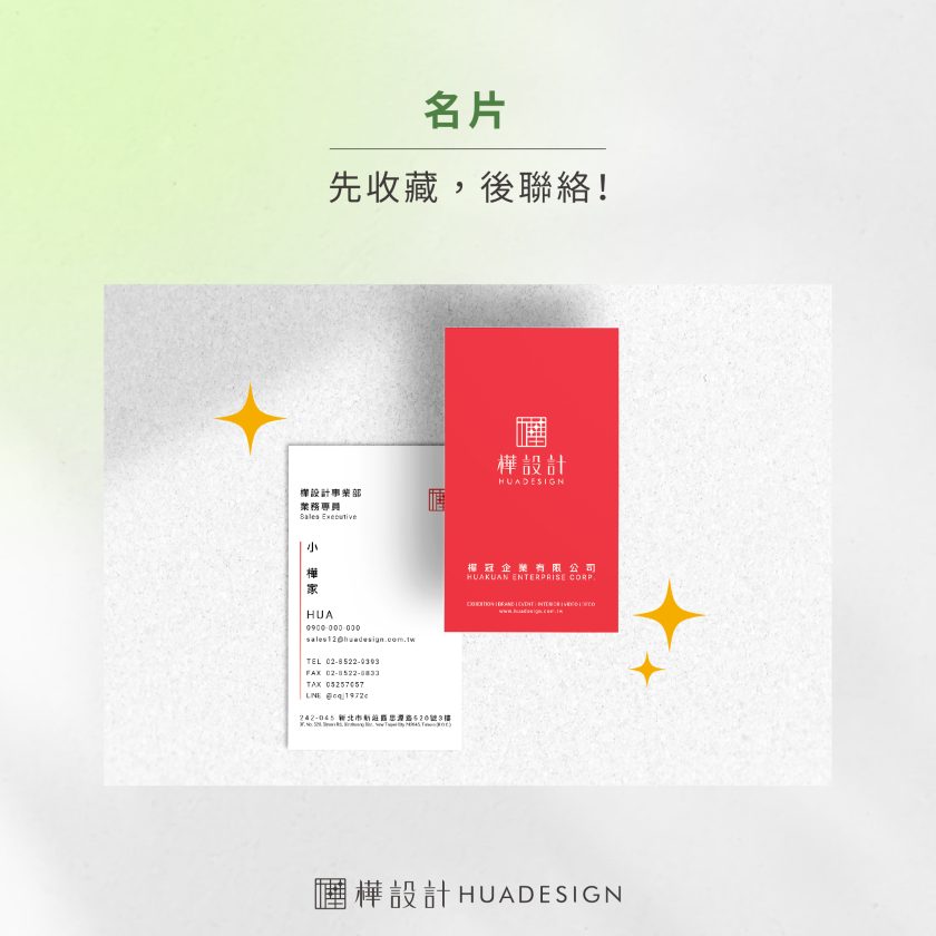 小卡片代表大形象,名片是交流的第一印象,就像故事的開場白一樣重要。一張設計出色的名片不僅是身份的象徵,也是活動中建立人脈的重要工具,更是展示個人或品牌特色的亮眼工具,幫助您在活動中快速吸引注意,建立專業形象,創造無限可能。
